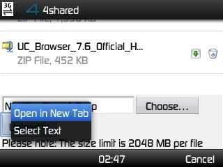 Eiits... jangan tekan upload dolo... disinilah tricknya... pada opera mini sorot tulisan upload lalu tekan angka 1... pilih 'open in new tab'